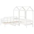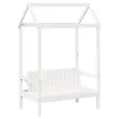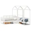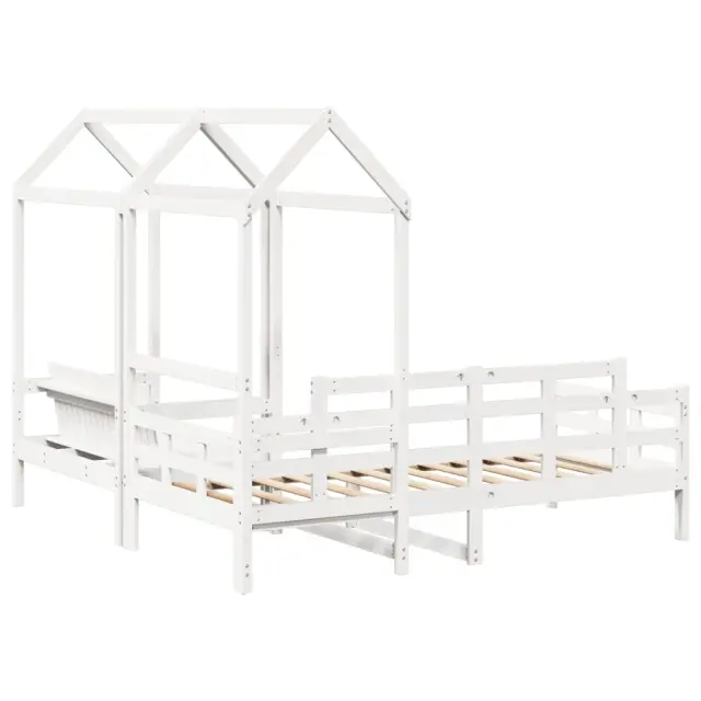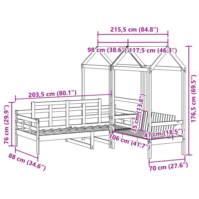 To vsestransko leseno dnevno posteljo s klopjo lahko uporabljate kot posteljo v spalnici ali pa kot kavč v dnevni sobi. Zadovoljila bo vse vaše potrebe in vam zagotovita dovolj prostora za spanje ter počitek. Trdna borovina: Trdna borovina je čudovit naravni material. Borovina ima ravne vzorce, grče pa dajejo materialu njegov značilen, rustikalen videz.3-stranska posteljna ograja: Stranice dnevne postelje se ponašajo z edinstvenim dizajnom, ki zagotavlja občutek varnosti in hkrati vašemu domu doda pridih prefinjenosti.Letven dizajn: Leseno letveno dno omogoča boljše kroženje zraka, zato bo vzmetnica dlje časa ostala sveža, ter izboljšuje nosilnost postelje in zagotavlja stabilnost.Dodaten prostor za shranjevanje: Prostor pod posteljo izkoristite za shranjevanje različnih stvari. To je popolno mesto za shranjevanje škatel z oblačili, igračami ali prešitimi odejami.Praktično naslonjalo: Sedežna klop je zasnovana z naslonom za hrbet, tako da lahko sprostite svoje telo v skladu s svojim udobjem. Dobro je vedeti:Vzmetnica ni priložena tej postelji. Ponujamo različno izbiro ležišč. V naši trgovini si lahko ogledate ustrezne vzmetnice.Potrebno sestavljanje: DaDnevna postelja:Barva: BelaMaterial: Trdna borovinaMaterial letvic: Vezan lesDimenzije: 203,5 x 88 x 76 cm (D x Š x V)Velikost primerne vzmetnice: 80 x 200 cm (Š x D) (vzmetnica ni priložena)Streha postelje:Barva: BelaMaterial: Trdna borovinaDimenzije: 98 x 70 x 176,5 cm (D x Š x V)Primerna starost otroka: Pod 6Klop:Barva: BelaMaterial: Trdna borovinaDimenzije: 117,5 x 70 x 176,5 cm (D x Š x V)Velikost sedeža: 106 x 47 cm (Š x G)Velikost naslonjala: 106 x 35 cm (Š x V)Maksimalna nosilnost: 220 kgPriložena blazina: NePaket vsebuje:1 x Dnevna postelja1 x Streha za posteljo1 x Klop s streho 3282309