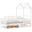 To vsestransko leseno dnevno posteljo lahko uporabljate kot posteljo v spalnici ali pa kot kavč v dnevni sobi. Zadovoljila bo vse vaše potrebe in vam zagotovita dovolj prostora za spanje ter počitek. Trdna borovina: Trdna borovina je čudovit naravni material. Borovina ima ravne vzorce, grče pa dajejo materialu njegov značilen, rustikalen videz.3-stranska posteljna ograja: Stranice dnevne postelje se ponašajo z edinstvenim dizajnom, ki zagotavlja občutek varnosti in hkrati vašemu domu doda pridih prefinjenosti.Letven dizajn: Leseno letveno dno omogoča boljše kroženje zraka, zato bo vzmetnica dlje časa ostala sveža, ter izboljšuje nosilnost postelje in zagotavlja stabilnost.Dodaten prostor za shranjevanje: Prostor pod posteljo izkoristite za shranjevanje različnih stvari. To je popolno mesto za shranjevanje škatel z oblačili, igračami ali prešitimi odejami.Odlična zabava: S kombinacijo strehe in raztegljivega kavča lahko ustvarite skrivališče, ki vašemu otroku nudi veliko zabave pred spanjem. Ta inovativni dodatek ne bo le vznemirljiva osrednja točka, temveč bo v sobo vnesel tudi občudovanje in navdušenje.Odprta stranska vrata: Streha ima odprta stranska vrata, ki otrokom omogočajo enostaven dostop do postelje in iz nje. Dobro je vedeti:Vzmetnica ni priložena tej postelji. Ponujamo različno izbiro ležišč. V naši trgovini si lahko ogledate ustrezne vzmetnice.Potrebno sestavljanje: DaDnevna postelja:Barva: BelaMaterial: Trdna borovinaMaterial letvic: Vezan lesDimenzije: 203,5 x 88 x 76 cm (D x Š x V)Velikost primerne vzmetnice: 80 x 200 cm (Š x D) (vzmetnica ni priložena)Streha postelje:Barva: BelaMaterial: Trdna borovinaDimenzije: 98 x 70 x 176,5 cm (D x Š x V)Primerna starost otroka: Pod 6Paket vsebuje:1 x Dnevna postelja1 x Streha za posteljo 3282303