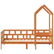 To vsestransko leseno dnevno posteljo lahko uporabljate kot posteljo v spalnici ali pa kot kavč v dnevni sobi. Zadovoljila bo vse vaše potrebe in vam zagotovita dovolj prostora za spanje ter počitek. Trdna borovina: Trdna borovina je čudovit naravni material. Borovina ima ravne vzorce, grče pa dajejo materialu njegov značilen, rustikalen videz.3-stranska posteljna ograja: Stranice dnevne postelje se ponašajo z edinstvenim dizajnom, ki zagotavlja občutek varnosti in hkrati vašemu domu doda pridih prefinjenosti.Letven dizajn: Leseno letveno dno omogoča boljše kroženje zraka, zato bo vzmetnica dlje časa ostala sveža, ter izboljšuje nosilnost postelje in zagotavlja stabilnost.Dodaten prostor za shranjevanje: Prostor pod posteljo izkoristite za shranjevanje različnih stvari. To je popolno mesto za shranjevanje škatel z oblačili, igračami ali prešitimi odejami.Odlična zabava: S kombinacijo strehe in raztegljivega kavča lahko ustvarite skrivališče, ki vašemu otroku nudi veliko zabave pred spanjem. Ta inovativni dodatek ne bo le vznemirljiva osrednja točka, temveč bo v sobo vnesel tudi občudovanje in navdušenje.Odprta stranska vrata: Streha ima odprta stranska vrata, ki otrokom omogočajo enostaven dostop do postelje in iz nje. Dobro je vedeti:Vzmetnica ni priložena tej postelji. Ponujamo različno izbiro ležišč. V naši trgovini si lahko ogledate ustrezne vzmetnice.Potrebno sestavljanje: DaDnevna postelja:Barva: Voščeno rjavaMaterial: Trdna borovinaMaterial letvic: Vezan lesDimenzije: 203,5 x 88 x 68,5 cm (D x Š x V)Velikost primerne vzmetnice: 80 x 200 cm (Š x D) (vzmetnica ni priložena)Streha postelje:Barva: Voščeno rjavaMaterial: Trdna borovinaDimenzije: 98 x 70 x 176,5 cm (D x Š x V)Primerna starost otroka: Pod 6Paket vsebuje:1 x Dnevna postelja1 x Streha za posteljo 3282239