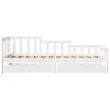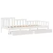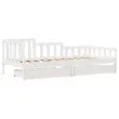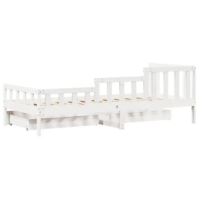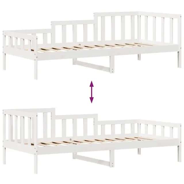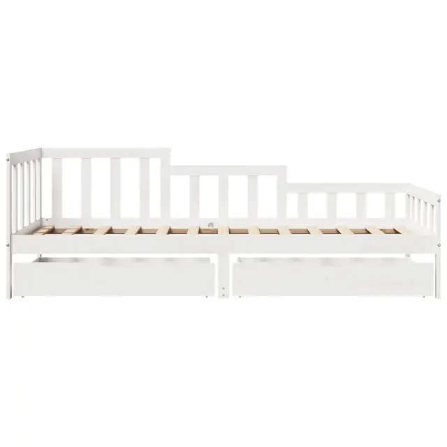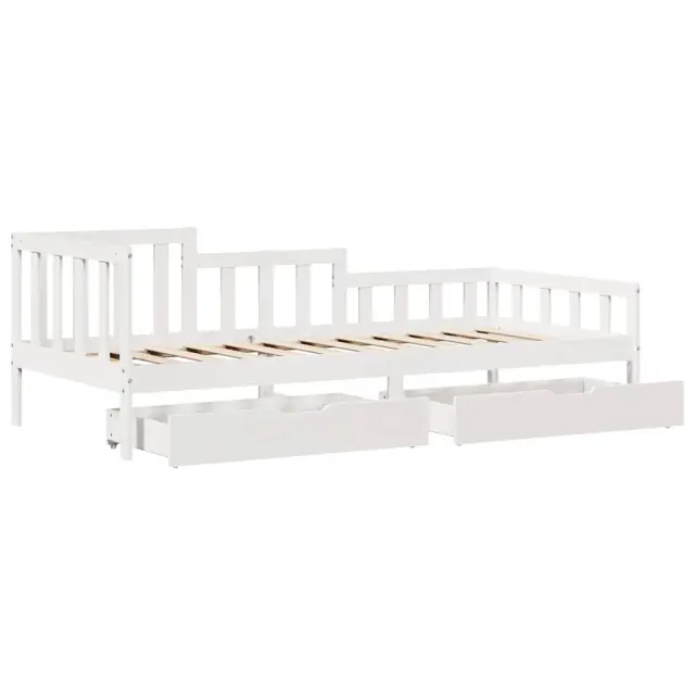 Ta dnevna postelja 2 v 1 s predali, ki služi kot kavč in postelja, je praktičen in privlačen dodatek za vašo dnevno sobo ali spalnico. Stabilen in dolgotrajen okvir: Trdna borovina je znana po svoji trdnosti in trajnosti. Ravni vzorci in značilni vozli prispevajo k njenemu rustikalnemu čaru.3-stranska posteljna ograja: Stranice te postelje se ponašajo z edinstvenim dizajnom, ki zagotavlja občutek varnosti in hkrati vašemu domu doda pridih prefinjenosti.Letvice za optimalno podporo: Postelja je opremljena z letvicami, ki zagotavljajo osnovno podporo in zračnost vašega ležišča.Rustikalni čar: Postelja daje vašemu prostoru rustikalne podtone, ki so lahko resnično sproščujoči. Pomirjujoč učinek te lesene dnevne postelje spremeni katero koli spalnico ali sobo za goste v pomirjujoč prostor, hkrati pa v prostor doda naravni element.Veliko prostora za shranjevanje: Ta postelja za goste ima dva predala, ki zagotavljata dovolj prostora za shranjevanje oblačil, nogavic, igrač, blazin itd. Dobro je vedeti:Vzmetnice niso priložene tej postelji. Ponujamo različno izbiro ležišč. V naši trgovini si lahko ogledate ustrezne vzmetnice.Barva: BelaMaterial: Trdna borovinaPotrebno sestavljanje: DaPostelja:Celotne dimenzije: 203,5 x 98 x 68,5 cm (D x Š x V)Velikost primerne vzmetnice: 90 x 200 cm (Š x D) (vzmetnica ni priložena)Predal:Zunanje dimenzije: 95 x 55 x 17 cm (Š x G x V)Notranje dimenzije: 86,5 x 52,5 x 10 cm (Š x G x V)Maks. nosilnost (vsaka): 20 kgS štirimi kolesiPaket vsebuje:1 x Posteljni okvir2 x Predal 3302106