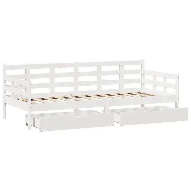 vidaXL Dnevna postelja s predali bela 90x190cm trdna borovina