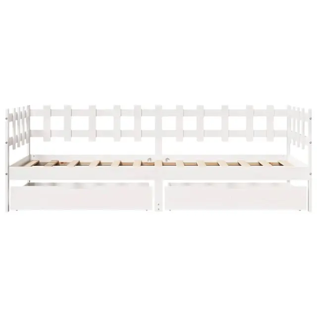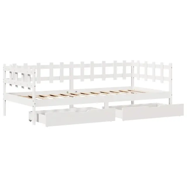 vidaXL Dnevna postelja s predali bela 90x200 cm trdna borovina