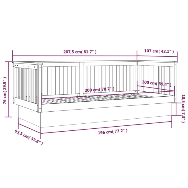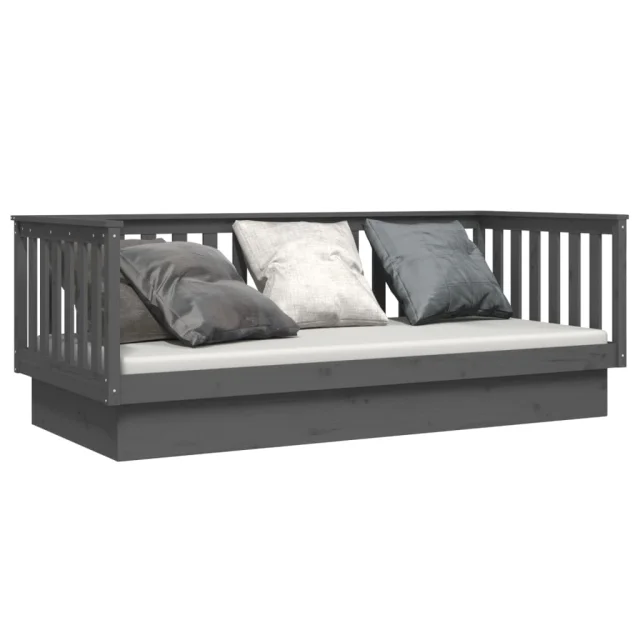 vidaXL Dnevna postelja siva 100x200 cm trdna borovina