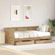 Ta rustikalna dnevna postelja iz inženirskega lesa s predali je zasnovana za sodobne prostore. Ponuja odlično kombinacijo funkcionalnosti in estetike. Njene čiste linije in minimalna dekoracija jo naredijo primerno za vsako spalnico, ki ceni preprostost. Dnevna postelja može služiti več namenom, zlahka preide iz kavča v udobno posteljo, kar jo postavlja med idealne izbire za majhne apartmaje, kjer je pohištvo z dvojnim namenom na ceni. Njena edinstvena zasnova omogoča številne dekorativne možnosti, ki ustrezajo različnim okusom.