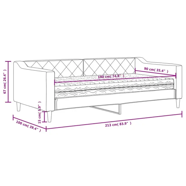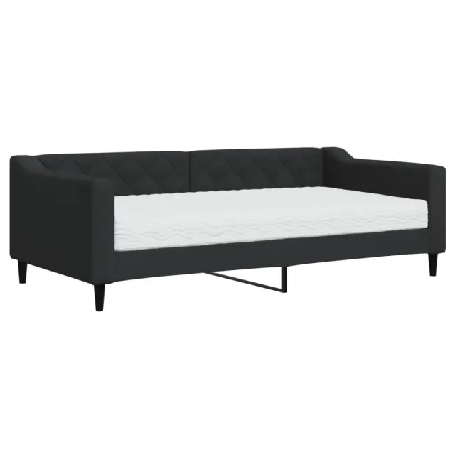Ta 2 v 1 dnevna postelja z vzmetnico, ki služi kot kavč in postelja, je praktičen in privlačen dodatek za vašo dnevno sobo ali spalnico. Vsestranska dnevna postelja: Raztegljiv kavč se lahko čez dan uporablja kot kavč, ponoči pa kot postelja, kar je hitra rešitev za prenočevanje gostov.Udobna penasta vzmetnica: Ta postelja je opremljena z vzmetnico iz pene za največjo podporo in optimalno udobje.Vzdržljiva tkanina in trdna konstrukcija: Ta dnevni kavč ima trpežen okvir iz lesa in kovine ter je oblazinjen s trpežno in udobno tkanino.Sodobno oblikovanje: Kavč postelja ima sodoben dizajn, ki jo odlikujejo čiste linije, minimalističen videz, vašim notranjim prostorom pa bo dodala sodoben stil!Barva: ČrnaMaterial: Tkanina (100 % poliester), kovina, trden lesMaterial prevleke vzmetnice: PleteninaMaterial letvic: Vezan les Material polnila: PenaCelotne dimenzije: 213 x 100 x 67 cm (D x Š x V)Dimenzije vzmetnice: 90 x 190 x 17 cm (Š x D x V)Višina sedeža, merjena od tal: 26,5 cmVišina nog: 15 cm Potrebno sestavljanje: DaPaket vsebuje:1 x Dnevna postelja 1 x Vzmetnica iz pene 3197420