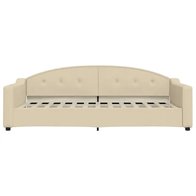 Ta 2 v 1 dnevna postelja z ležiščem, ki služi kot kavč in postelja, je praktičen in privlačen dodatek za vašo dnevno sobo ali spalnico. Vsestranska dnevna postelja: Raztegljiv kavč čez dan deluje kot kavč, ponoči pa se zlahka spremeni v posteljo, kar je priročna rešitev za sprejemanje gostov in povečanje prostora. Udobna penasta vzmetnica: Ta postelja je opremljena z vzmetnico iz pene za največjo podporo in optimalno udobje. Vzdržljiva tkanina in trdna konstrukcija: Ta dnevni kavč ima trpežen okvir iz lesa in kovine ter je oblazinjen s trpežno in udobno tkanino.Barva: KremMaterial: Tkanina (100 % poliester), kovina, trden lesMaterial letvic: Vezan lesMaterial polnila: PenaCelotne dimenzije: 223 x 100 x 75 cm (D x Š x V)Dimenzije vzmetnice iz pene: 90 x 200 x 17 cm (Š x D x V)Širina sedeža: 200 cm Globina sedeža: 90 cm Višina sedeža, merjena od tal: 26,5 cmVišina naslonjala za roke, merjena od tal: 58 cmVišina nog: 5 cmPotrebno sestavljanje: DaPaket vsebuje:1 x Dnevna postelja 1 x Vzmetnica iz pene 3197516