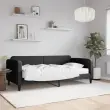 Ta 2 v 1 dnevna postelja z ležiščem, ki služi kot kavč in postelja, je praktičen in privlačen dodatek za vašo dnevno sobo ali spalnico. Vsestranska dnevna postelja: Raztegljiv kavč čez dan deluje kot kavč, ponoči pa se zlahka spremeni v posteljo, kar je priročna rešitev za sprejemanje gostov in povečanje prostora.Udobna penasta vzmetnica: Ta postelja je opremljena z vzmetnico iz pene za največjo podporo in optimalno udobje.Vzdržljiva tkanina in trdna konstrukcija: Ta dnevni kavč ima trpežen okvir iz lesa in kovine ter je oblazinjen s trpežno in udobno tkanino.Barva: ČrnaMaterial: Tkanina (100 % poliester), kovina, trden lesMaterial letvic: Vezan lesMaterial polnila: PenaDimenzije: 223 x 100 x 75 cm (D x Š x V)Dimenzije vzmetnice iz pene: 90 x 200 x 17 cm (Š x D x V)Širina sedeža: 200 cm Globina sedeža: 90 cm Višina sedeža, merjena od tal: 26,5 cmVišina naslonjal za roke, od tal: 68 cmVišina nog: 15 cmPotrebno sestavljanje: DaPaket vsebuje:1 x Dnevna postelja 1 x Vzmetnica iz pene 3196800