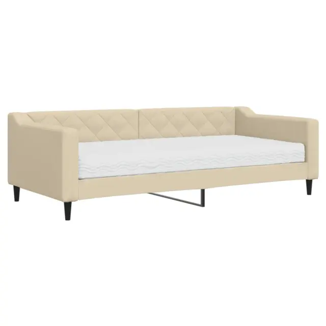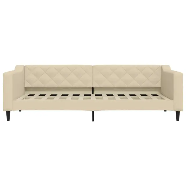 Ta 2 v 1 dnevna postelja z vzmetnico, ki služi kot kavč in postelja, je praktičen in privlačen dodatek za vašo dnevno sobo ali spalnico. Vsestranska dnevna postelja: Raztegljiv kavč se lahko čez dan uporablja kot kavč, ponoči pa kot postelja, kar je hitra rešitev za prenočevanje gostov.Udobna penasta vzmetnica: Ta postelja je opremljena z vzmetnico iz pene za največjo podporo in optimalno udobje.Vzdržljiva tkanina in trdna konstrukcija: Ta dnevni kavč ima trpežen okvir iz lesa in kovine ter je oblazinjen s trpežno in udobno tkanino.Sodobno oblikovanje: Kavč postelja ima sodoben dizajn, ki jo odlikujejo čiste linije, minimalističen videz, vašim notranjim prostorom pa bo dodala sodoben stil!Barva: KremMaterial: Tkanina (100 % poliester), kovina, trden lesMaterial prevleke vzmetnice: PleteninaMaterial letvic: Vezan les Material polnila: PenaCelotne dimenzije: 223 x 100 x 67 cm (D x Š x V)Dimenzije vzmetnice: 90 x 200 x 17 cm (Š x D x V)Višina sedeža, merjena od tal: 26,5 cmVišina nog: 15 cm Potrebno sestavljanje: DaPaket vsebuje:1 x Dnevna postelja 1 x Vzmetnica iz pene 3197412