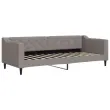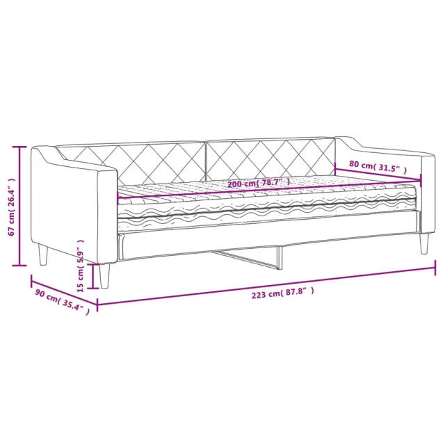 Ta 2 v 1 dnevna postelja z vzmetnico, ki služi kot kavč in postelja, je praktičen in privlačen dodatek za vašo dnevno sobo ali spalnico. Vsestranska dnevna postelja: Raztegljiv kavč se lahko čez dan uporablja kot kavč, ponoči pa kot postelja, kar je hitra rešitev za prenočevanje gostov.Udobna penasta vzmetnica: Ta postelja je opremljena z vzmetnico iz pene za največjo podporo in optimalno udobje.Vzdržljiva tkanina in trdna konstrukcija: Ta dnevni kavč ima trpežen okvir iz lesa in kovine ter je oblazinjen s trpežno in udobno tkanino.Sodobno oblikovanje: Kavč postelja ima sodoben dizajn, ki jo odlikujejo čiste linije, minimalističen videz, vašim notranjim prostorom pa bo dodala sodoben stil!Barva: TaupeMaterial: Tkanina (100 % poliester), kovina, trden lesMaterial prevleke vzmetnice: PleteninaMaterial letvic: Vezan les Material polnila: PenaCelotne dimenzije: 223 x 90 x 67 cm (D x Š x V)Dimenzije vzmetnice: 80 x 200 x 17 cm (Š x D x V)Višina sedeža, merjena od tal: 26,5 cmVišina nog: 15 cm Potrebno sestavljanje: DaPaket vsebuje:1 x Dnevna postelja 1 x Vzmetnica iz pene 3197406