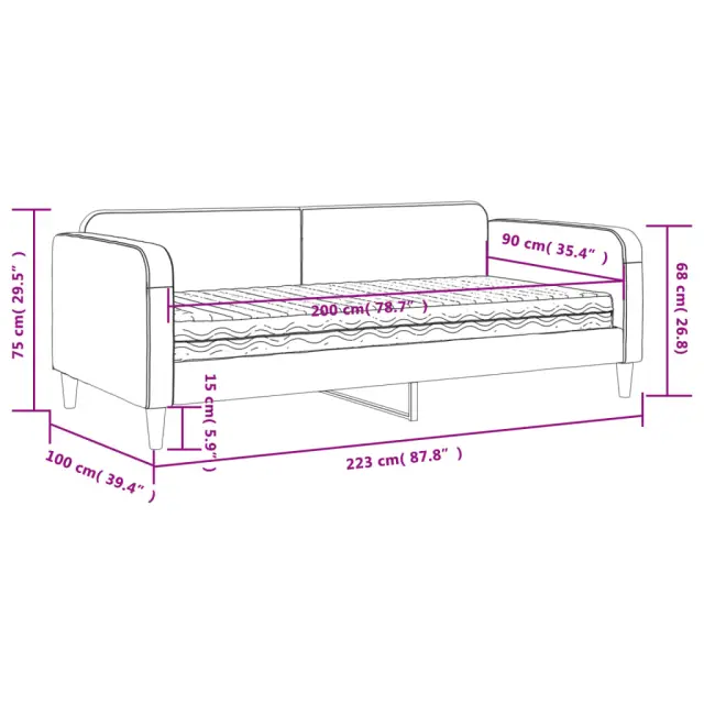 Ta 2 v 1 dnevna postelja z ležiščem, ki služi kot kavč in postelja, je praktičen in privlačen dodatek za vašo dnevno sobo ali spalnico. Vsestranska dnevna postelja: Raztegljiv kavč čez dan deluje kot kavč, ponoči pa se zlahka spremeni v posteljo, kar je priročna rešitev za sprejemanje gostov in povečanje prostora.Udobna penasta vzmetnica: Ta postelja je opremljena z vzmetnico iz pene za največjo podporo in optimalno udobje.Vzdržljiva tkanina in trdna konstrukcija: Ta dnevni kavč ima trpežen okvir iz lesa in kovine ter je oblazinjen s trpežno in udobno tkanino.Barva: TaupeMaterial: Tkanina (100 % poliester), kovina, trden lesMaterial letvic: Vezan lesMaterial polnila: PenaDimenzije: 223 x 100 x 75 cm (D x Š x V)Dimenzije vzmetnice iz pene: 90 x 200 x 17 cm (Š x D x V)Širina sedeža: 200 cm Globina sedeža: 90 cm Višina sedeža, merjena od tal: 26,5 cmVišina naslonjal za roke, od tal: 68 cmVišina nog: 15 cmPotrebno sestavljanje: DaPaket vsebuje:1 x Dnevna postelja 1 x Vzmetnica iz pene 3196801
