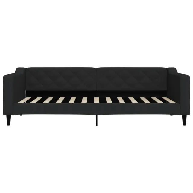 Ta 2 v 1 dnevna postelja z vzmetnico, ki služi kot kavč in postelja, je praktičen in privlačen dodatek za vašo dnevno sobo ali spalnico. Vsestranska dnevna postelja: Raztegljiv kavč se lahko čez dan uporablja kot kavč, ponoči pa kot postelja, kar je hitra rešitev za prenočevanje gostov.Udobna penasta vzmetnica: Ta postelja je opremljena z vzmetnico iz pene za največjo podporo in optimalno udobje.Vzdržljiva tkanina in trdna konstrukcija: Ta dnevni kavč ima trpežen okvir iz lesa in kovine ter je oblazinjen s trpežno in udobno tkanino.Sodobno oblikovanje: Kavč postelja ima sodoben dizajn, ki jo odlikujejo čiste linije, minimalističen videz, vašim notranjim prostorom pa bo dodala sodoben stil!Barva: ČrnaMaterial: Tkanina (100 % poliester), kovina, trden lesMaterial prevleke vzmetnice: PleteninaMaterial letvic: Vezan les Material polnila: PenaCelotne dimenzije: 223 x 100 x 67 cm (D x Š x V)Dimenzije vzmetnice: 90 x 200 x 17 cm (Š x D x V)Višina sedeža, merjena od tal: 26,5 cmVišina nog: 15 cm Potrebno sestavljanje: DaPaket vsebuje:1 x Dnevna postelja 1 x Vzmetnica iz pene 3197410