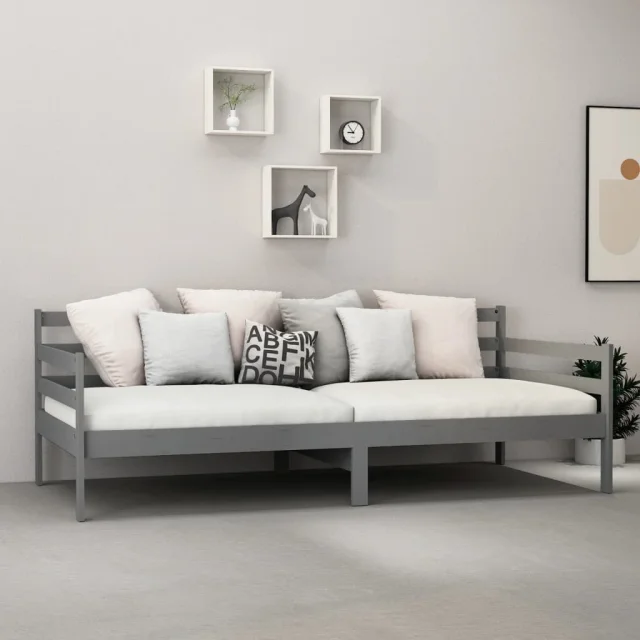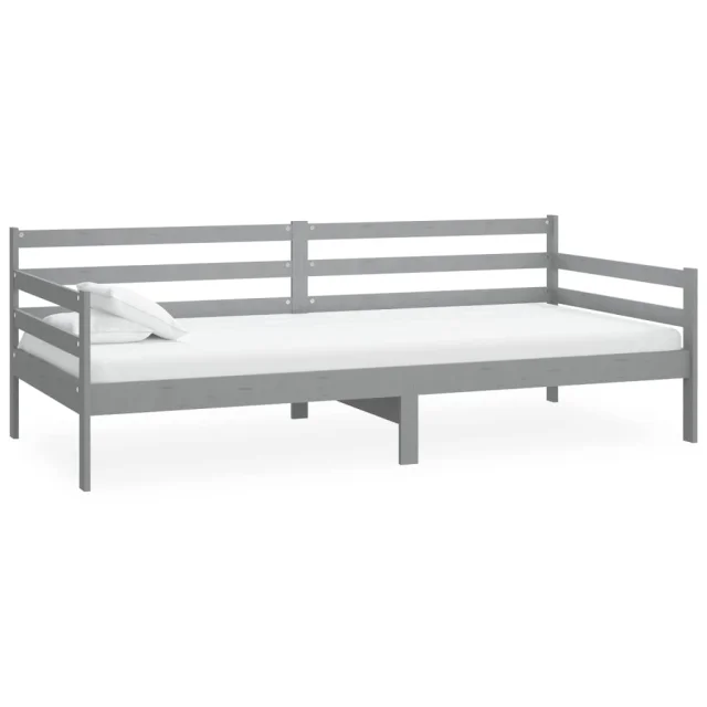 vidaXL Dnevna postelja z vzmetnico 90x200 cm siva trdna borovina