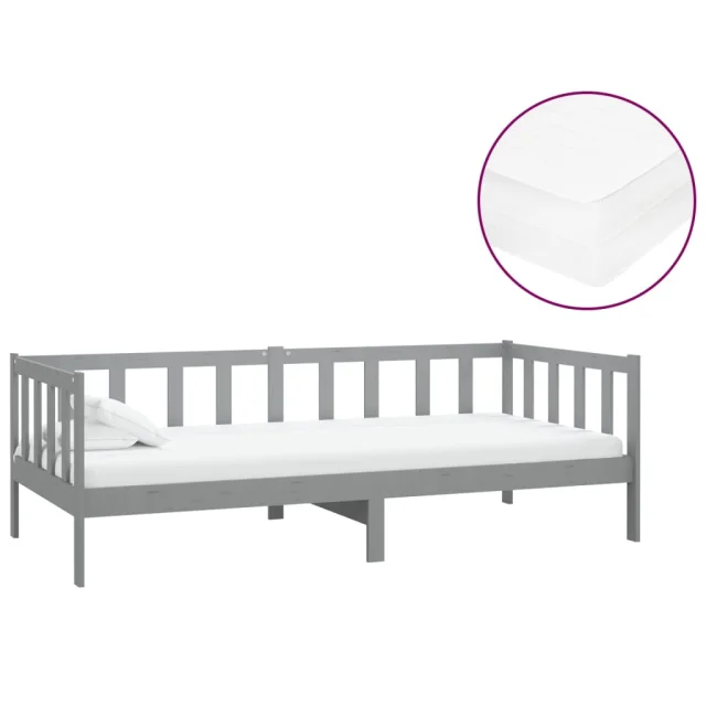 vidaXL Dnevna postelja z vzmetnico 90x200 cm siva trdna borovina