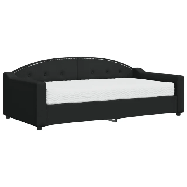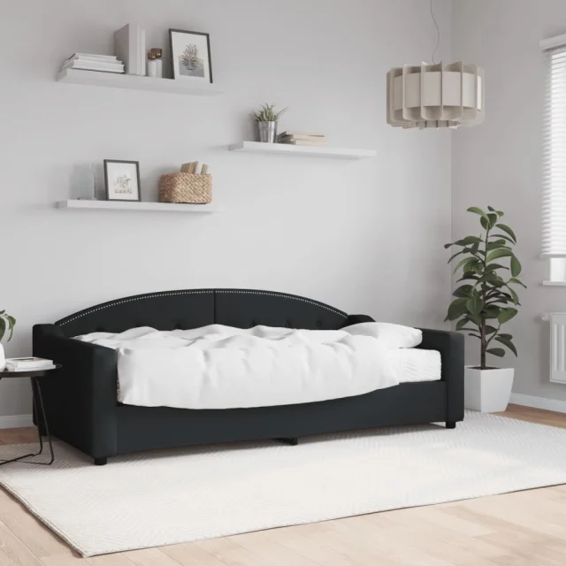 vidaXL Dnevna postelja z vzmetnico črna 90x190 cm blago
