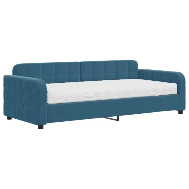 vidaXL Dnevna postelja z vzmetnico modra 90x200 cm žamet