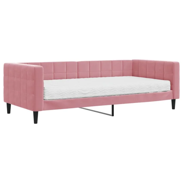 vidaXL Dnevna postelja z vzmetnico roza 90x200 cm žamet