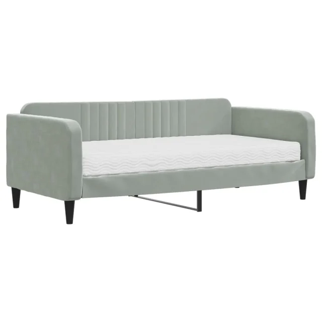 vidaXL Dnevna postelja z vzmetnico svetlo siva 90x190 cm žamet