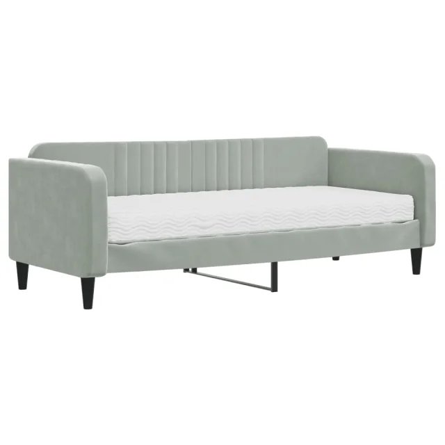 vidaXL Dnevna postelja z vzmetnico svetlo siva 90x200 cm žamet