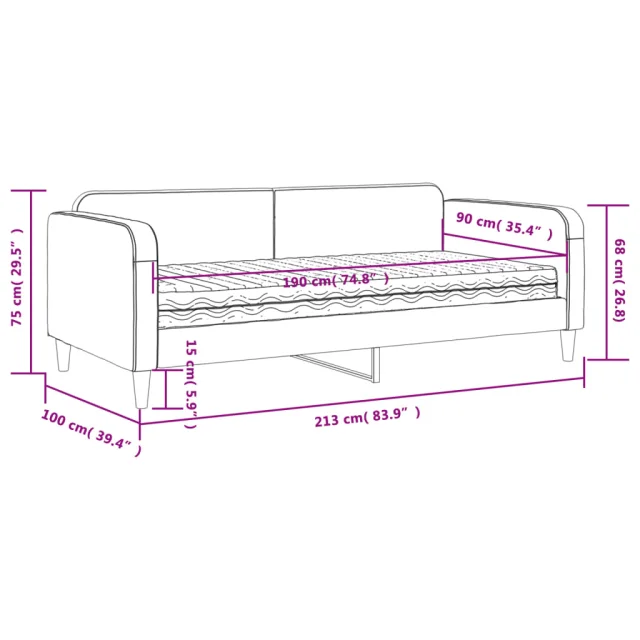 • Dimenzije vzmetnice iz pene: 90 x 190 x 17 cm (Š x D x V)