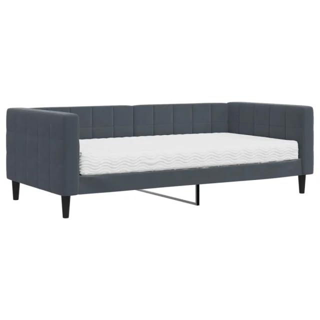 vidaXL Dnevna postelja z vzmetnico temno siva 90x190 cm žamet