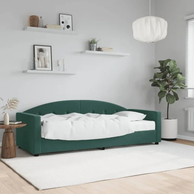 vidaXL Dnevna postelja z vzmetnico temno zelena 80x200 cm žamet