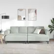 • Vključeni deli: Ima končno in predstavitveno hrbtno stran, blazine pa so napolnjene z lahkotno peno, kar nudi luksuzno udobje. Rokonaslon iz poliestra dopolnjuje celoten dizajn in ponuja prijetno mesto za sedenje tako za družino kot za goste. Črne noge dajejo stabilno podlago in šik kontrast proti nevtralni tkanini.