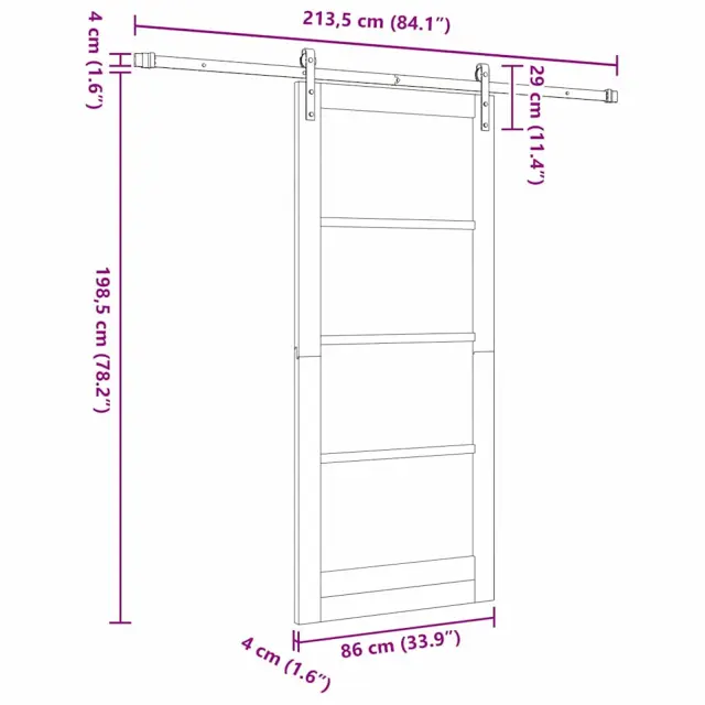 • Splošne dimenzije: 213.5 x 4 x 198.5 cm (D x Š x V)