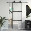 vidaXL Drsna vrata črna 76x205 cm kaljeno steklo in aluminij