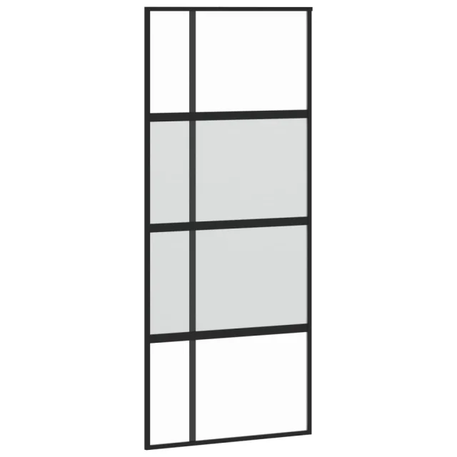 vidaXL Drsna vrata črna 90x205 cm kaljeno steklo in aluminij