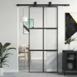 vidaXL Drsna vrata črna 90x205 cm kaljeno steklo in aluminij