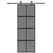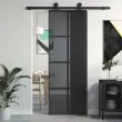 vidaXL Drsna vrata črna 76x205 cm kaljeno steklo in aluminij