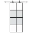 vidaXL Drsna vrata črna 90x205 cm kaljeno steklo in aluminij