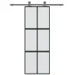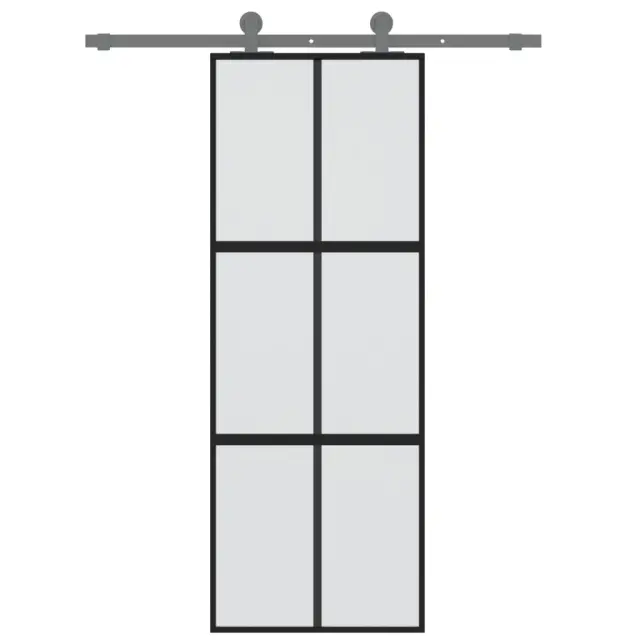 vidaXL Drsna vrata črna 76x205 cm kaljeno steklo in aluminij