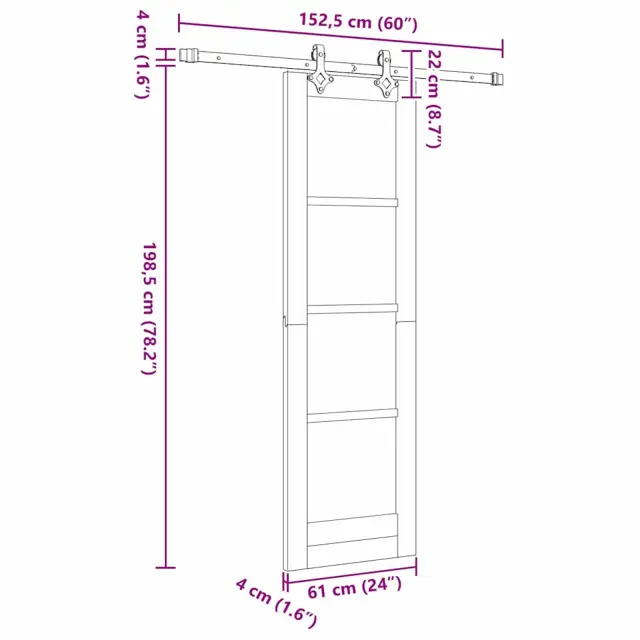 • Splošne dimenzije: 152,5 x 4 x 198,5 cm (D x Š x V)