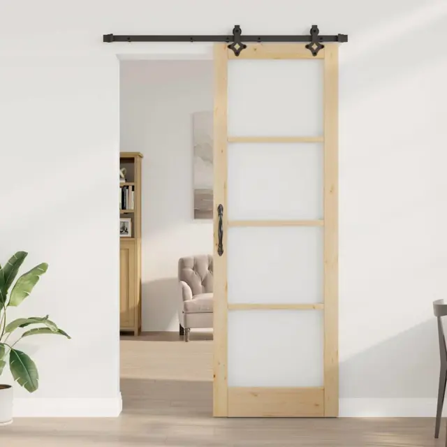 vidaXL Drsna vrata Naravna 78 x 232 cm Trden borov les in steklo
