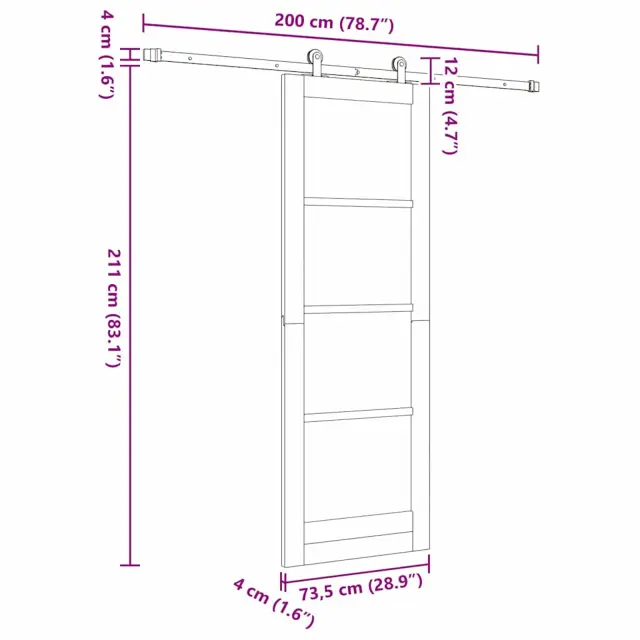 vidaXL Drsna vrata Naravna in črna 73,5 x 211 cm Masivno borovo les