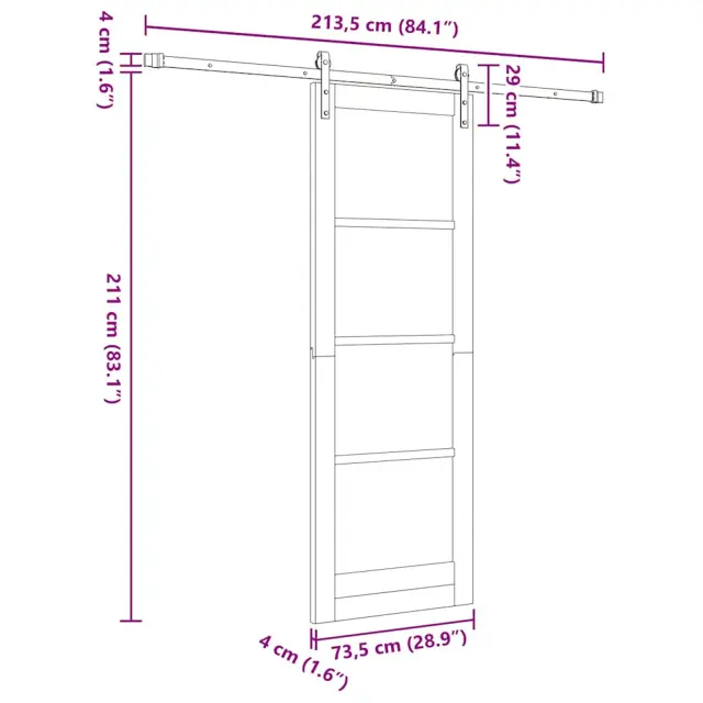• Splošne dimenzije: 213.5 x 4 x 211 cm (D x Š x V)