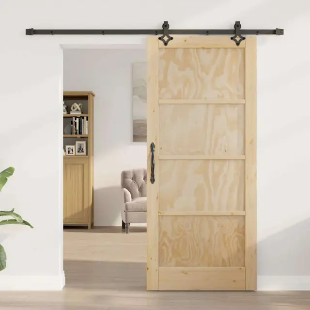 vidaXL Drsna vrata Naravna in črna 86 x 198,5 cm Masivno borovo les