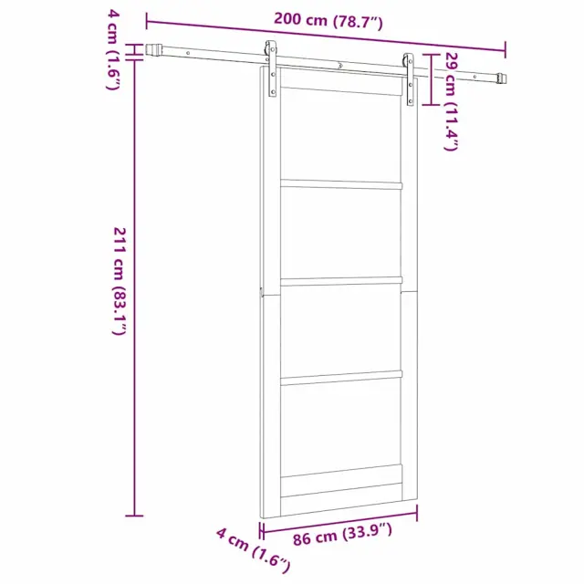 vidaXL Drsna vrata Naravna in črna 86 x 211 cm Masivno borovo les