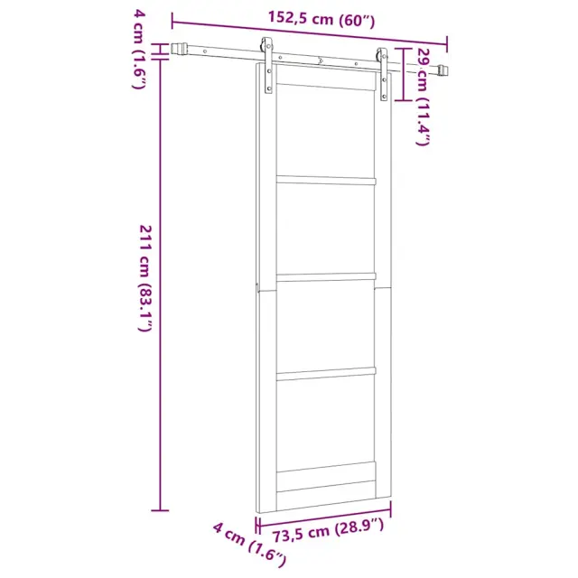 • Splošne dimenzije: 152,5 x 4 x 211 cm (D x Š x V)