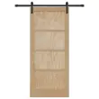• Materiali: Ta drsna vrata iz trdega borovega lesa ponujajo naravno toplino in vzdržljivost. Vrhunski les dodaja organsko estetiko, ki obogati vsak prostor, medtem ko vezan les in prašno lakirani jekleni elementi poskrbijo za moč in trajnost. Ti materiali zagotavljajo stabilnost in dolgotrajnost vrat tudi pri vsakodnevni uporabi.