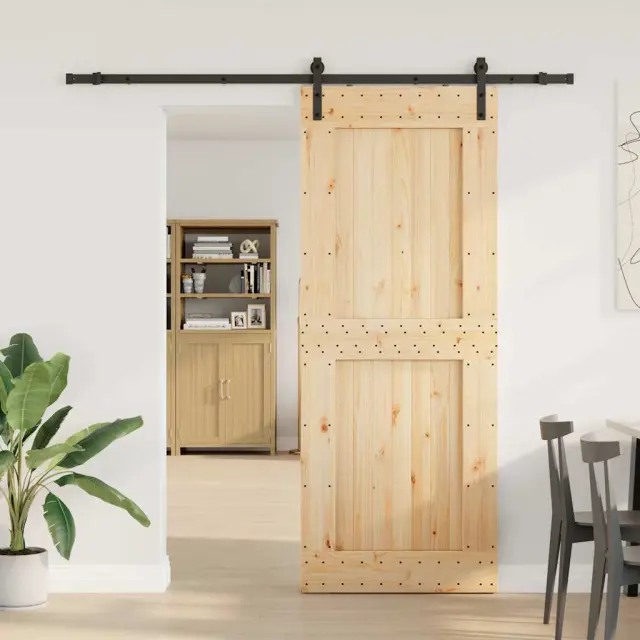 vidaXL Drsna vrata s kompletom vodil 90x210 cm trdna borovina