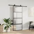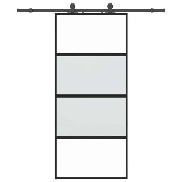 vidaXL Drsna vrata z opremo črna 90x205 cm kaljeno steklo