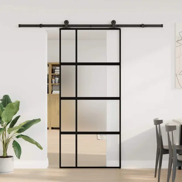 vidaXL Drsna vrata z opremo 90x205 cm kaljeno steklo in aluminij
