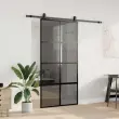 vidaXL Drsna vrata z opremo črna 102,5x205 cm kaljeno steklo