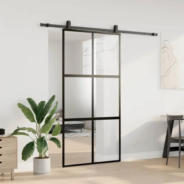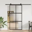 vidaXL Drsna vrata z opremo črna 102,5x205 cm kaljeno steklo