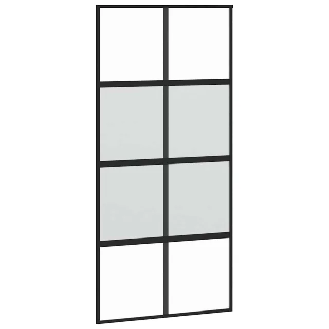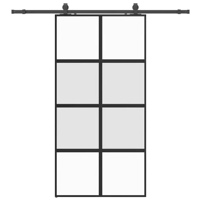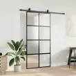 vidaXL Drsna vrata z opremo črna 102,5x205 cm kaljeno steklo