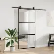 vidaXL Drsna vrata z opremo črna 102,5x205 cm kaljeno steklo