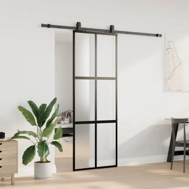 vidaXL Drsna vrata z opremo črna 76x205 cm kaljeno steklo