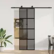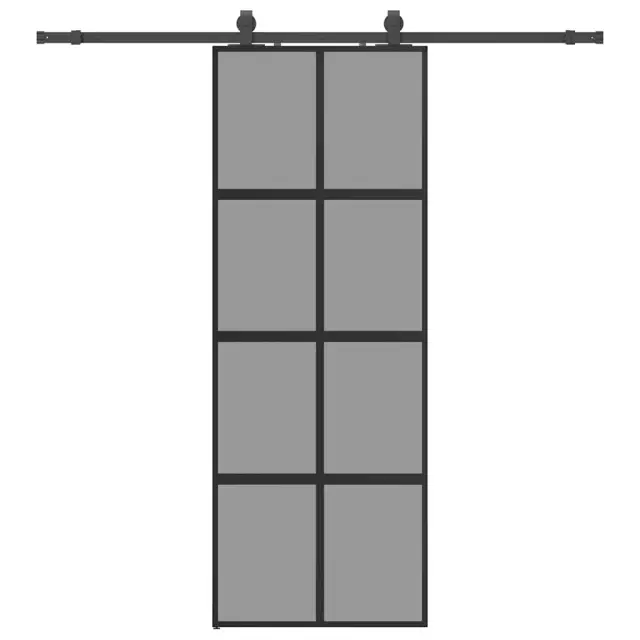 vidaXL Drsna vrata z opremo črna 76x205 cm kaljeno steklo